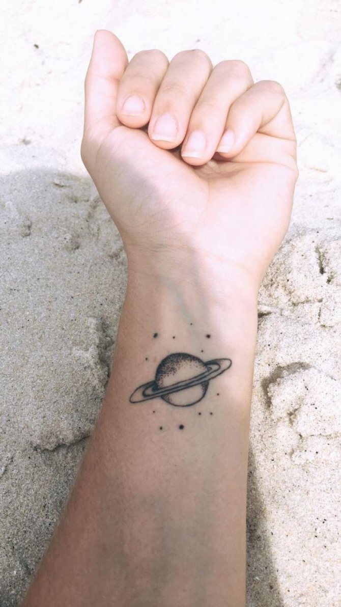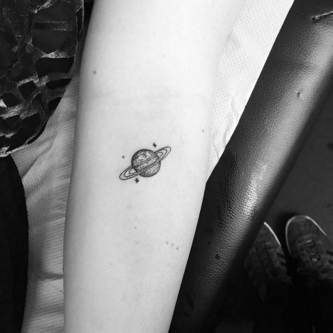 A legcsinosabbak a minimalista változatok, ahol a bolygót finom vonalak és pontok segítségével körvonalazzák. A színek hiánya és az elmosódott háttér tömör és stílusos tetoválást eredményez.