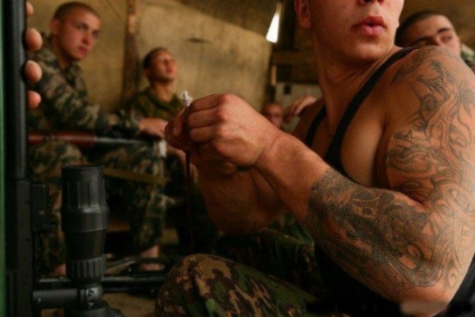 - Az ilyen tetoválások valóban gyakran előfordulnak a hadseregben, különösen a légideszantosoknál. Ezen túlmenően az ilyen tetoválások a szabadságelvonással járó helyeken is megtalálhatók. Ellentétben a modern műhelyekkel, ahol a pénzedért bármilyen tetoválást megrendelhetsz, a börtönökben semmit, csak mert nem elég.