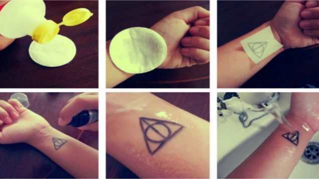 Rajzolás előtt törölje le bőrét alkohollal vagy tisztító krémmel. A kész vázlatot vigye át a papírról a kezére, és hagyja megszáradni. Ezután vigyen fel babapúdert a kiválasztott területre, és finoman dörzsölje be a bőrbe. Utána fújja be a kezét hajlakkal, de ne vigye túlzásba, nehogy kiszárítsa a bőrt. Ha túl sok spray kerül a csuklójára, óvatosan törölje le egy zsebkendővel. A tetoválás készen áll! Egy csak tollal ellátott dizájn körülbelül egy hétig élvezhető, egy highlighter pedig akár egy hónapig is kitart.