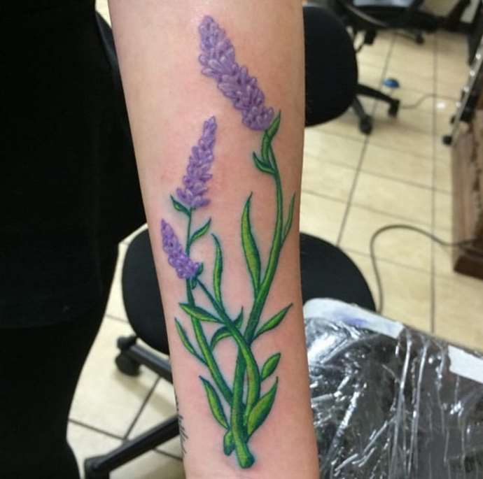 A virág hagyományosabb ábrázolása egy csokor vékony gally, zöld levelekkel és gyönyörű lila virágokkal. A minta hosszú és hosszúkás lehet, ezért a tetoválást általában a lábakon, karokon, oldalakon és lapockákon alkalmazzák.