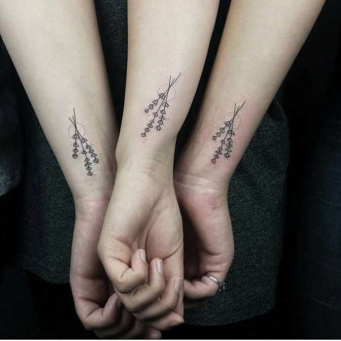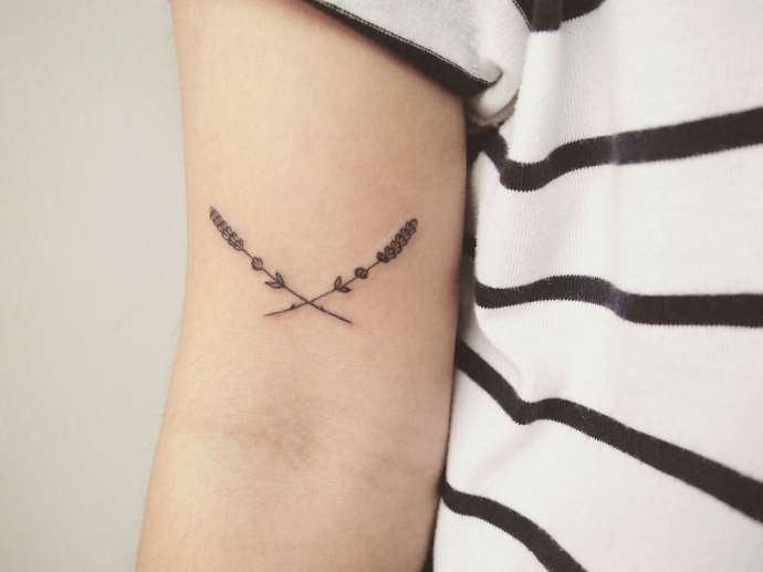 A finom virág alakú kép kiemeli a karcsú női nyak báját. A lányok úgy vélik, hogy a levendula segít nekik találkozni a lelki társukkal. A nászutasok a hűség és az örök szerelem jeleként szívesebben tetováltatnak magukra két keresztbe tett ágat.