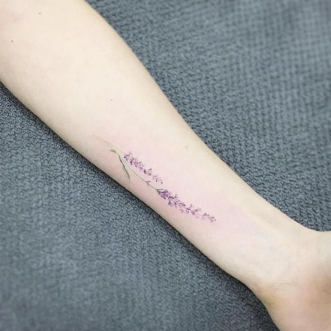 Egy túlnyomórészt női tetoválás, amely a női tulajdonos eleganciáját és szépségét hangsúlyozza. De gyakran a férfiak testén is megtalálható a kép. Az emberiség erősebbik fele inkább azt teszi. levendula virág tetoválás