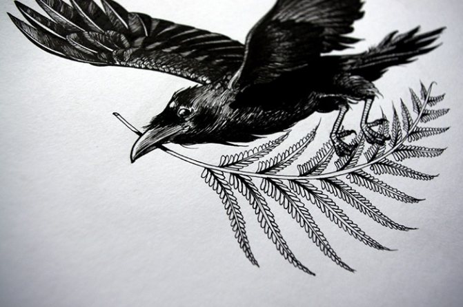 Ugyanakkor a kelták számára a holló a bölcsesség szimbóluma volt. Mágikus rituálékban használták. Így a madár képe misztikus értelmet nyert. A jövő megjóslásának képességével függ össze.