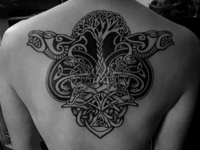- Hátul. Nagyméretű részletes képek kerülnek ide. Egy tetoválás ebben a zónában gyakrabban működik erős amulettként a sötét mágia, a rosszindulatúak és az árulás ellen. A rajz azt jelzi, hogy valaki vezetői pozíciót szeretne betölteni.