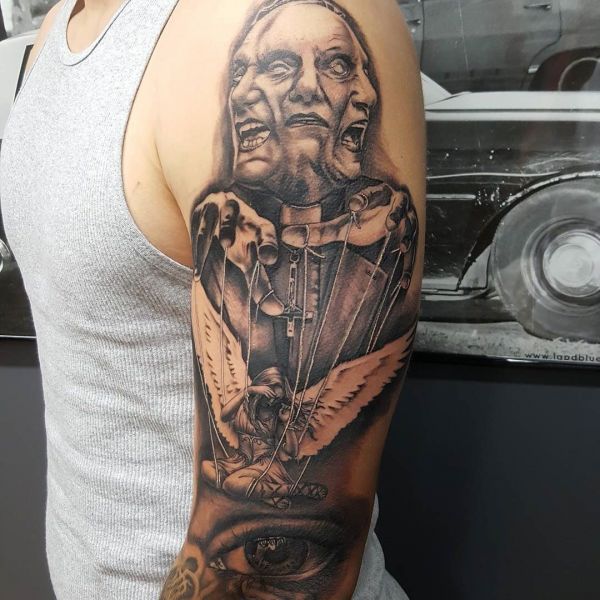 Egy srác tetoválása a gonosz képét ábrázolja.