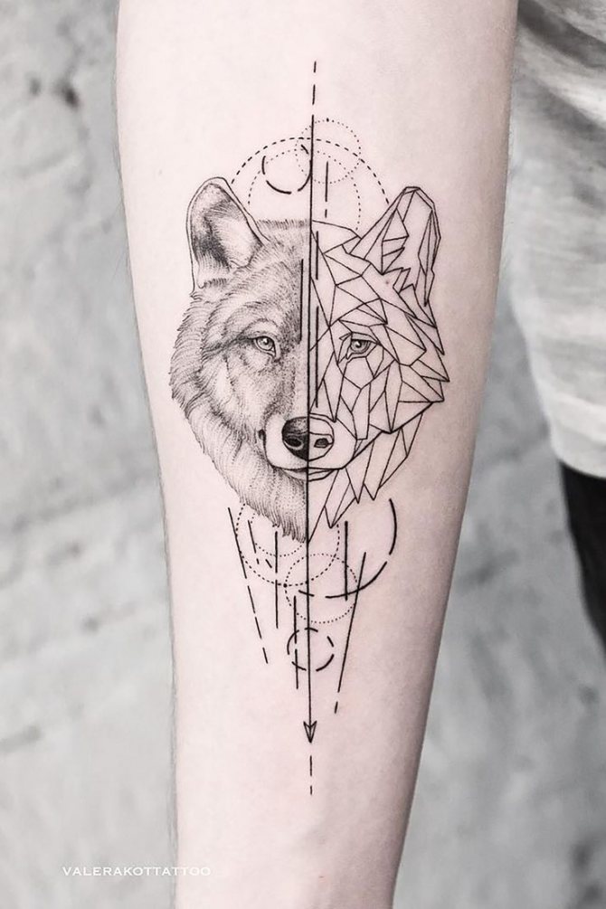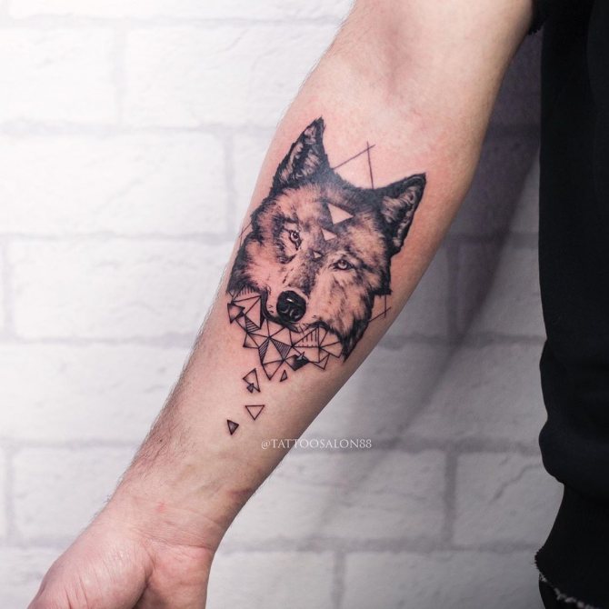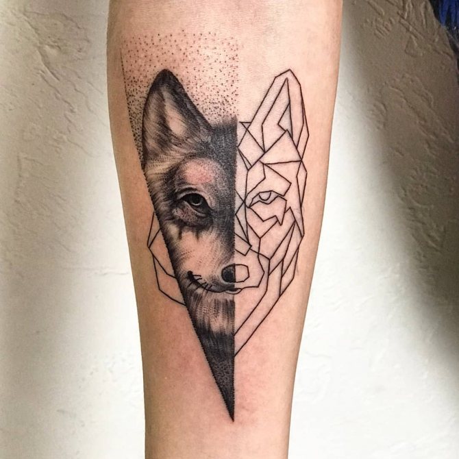 Néhányan nem akarnak standard grafikai dizájnt végezni, és geometriai formákkal ellátott farkas tetoválást választanak. Egy ilyen vázlat nemcsak a viselőjének erős karakterét, hanem sajátos gondolkodásmódját is jelenti, amely mások számára érthetetlen lehet.
