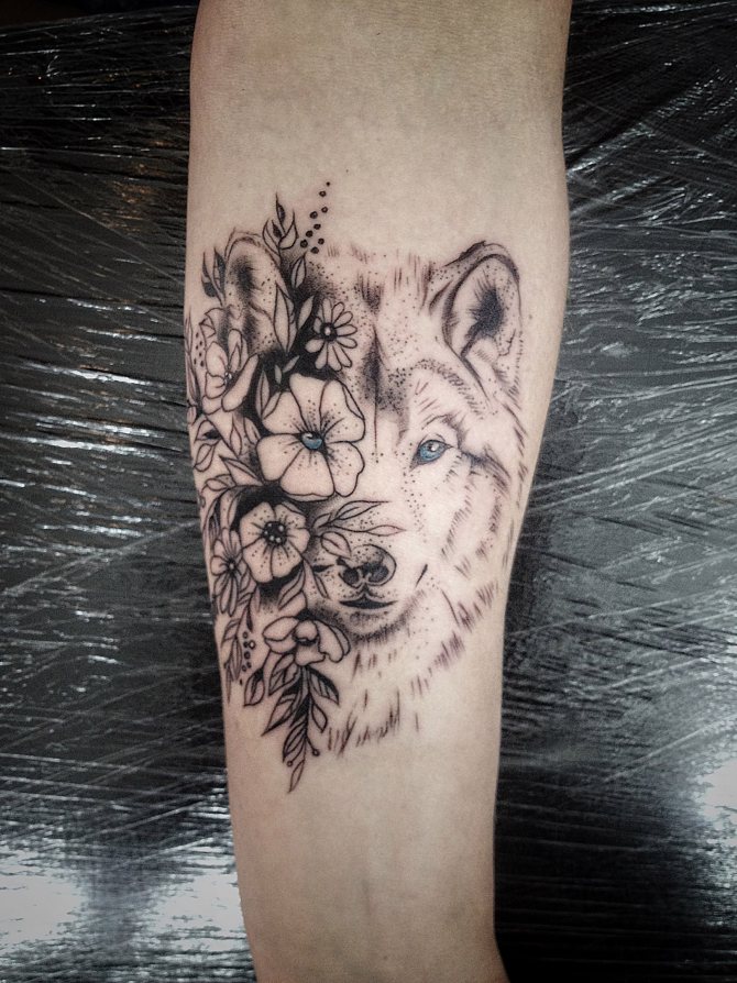 A farkas az egyik totemállat. Imádták és hittek a hatalmában. A sajátos isteni stílusban végzett tetoválás azt jelenti, hogy egy nő készen áll a hitre - a karaktere erősebb akaratú és bátrabb lesz. Képes lesz sok bajon túllépni, és minden élethelyzetből büszkén, emelt fővel, gyönyörű és bátor farkasként kerül ki.
