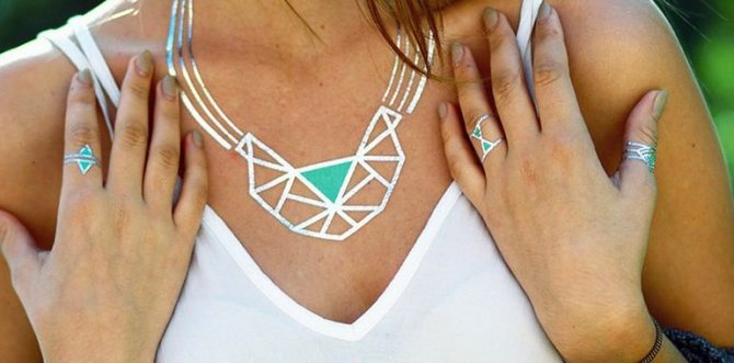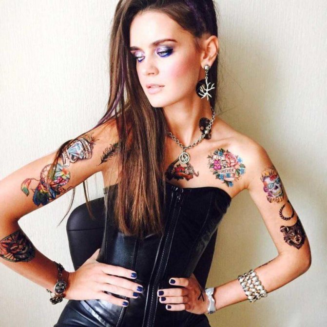- Ruhákkal - ha egyszerre több nagy rajz van a testen, gondolkodj a kiegészítőkön és a ruhákon, kívánatos, hogy a rajz textúráját és színét kombináld a ruháddal. Természetesen egy klasszikus öltöny vagy estélyi ruha nem alkalmas ideiglenes tetováláshoz;