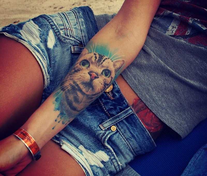 Az alkaron lévő tetoválások kiemelik a kéz kecsességét.