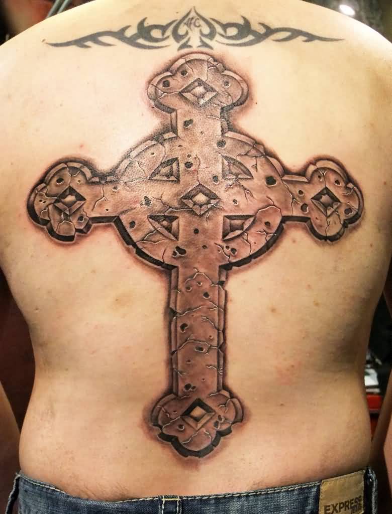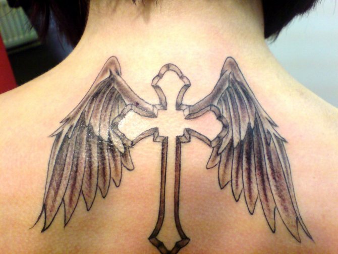 - Kereszt tetoválás a hátán. Egy ilyen szimbólum a viselője lelkiségének markáns demonstrációja lesz.
