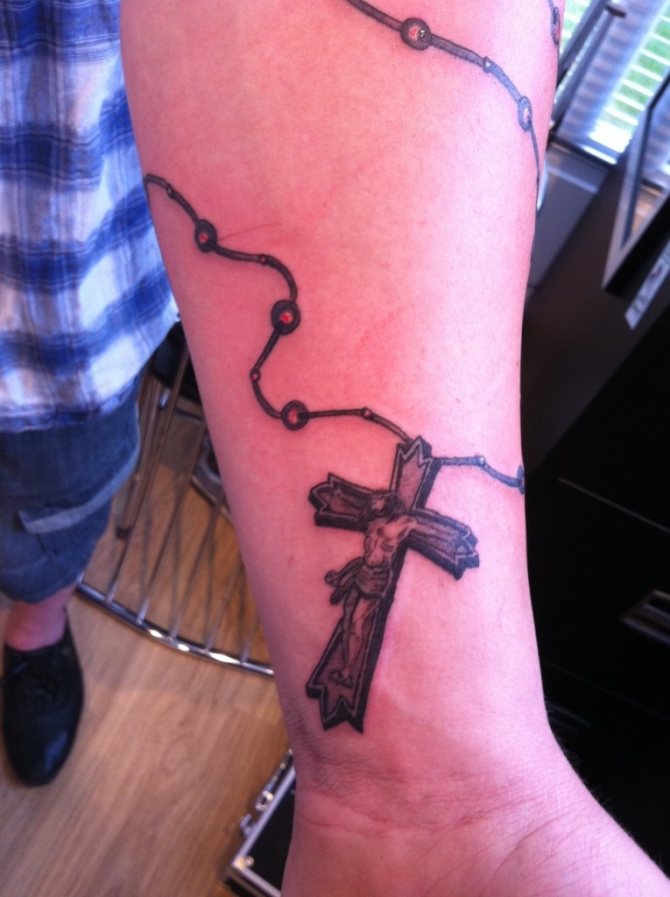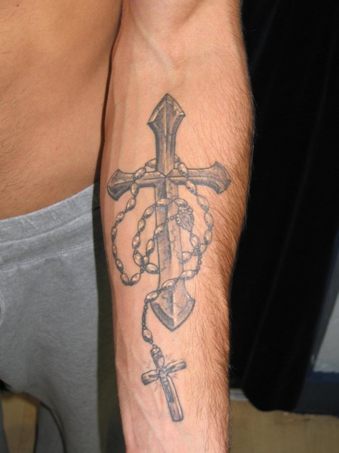 A karján lévő kereszt az erő és a türelem szimbóluma. Az ilyen emberek a becsületet mindenek fölé helyezik, így ha valaki keresztet visel a csuklóján, vállán vagy alkarján, akkor tudja, hogy aggódik a személye miatt, és nem engedi, hogy bárki is csorbítsa a méltóságát.