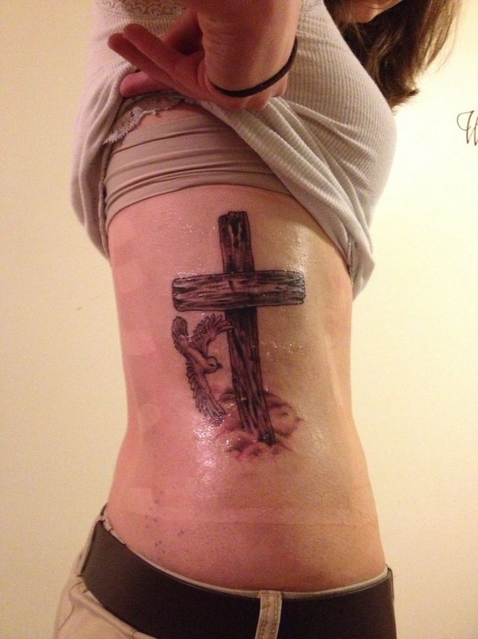Van egy olyan vélemény, hogy a kereszt tetoválást nagyon vallásos és istenfélő lányok alkalmazzák. Ez részben igaz, ez a szimbólum további védelemként szolgál számukra. Gyakrabban a kereszt szimbolizálja a keresztény értékeket, amelyekhez a nő ragaszkodik, és a lány tisztaságát.