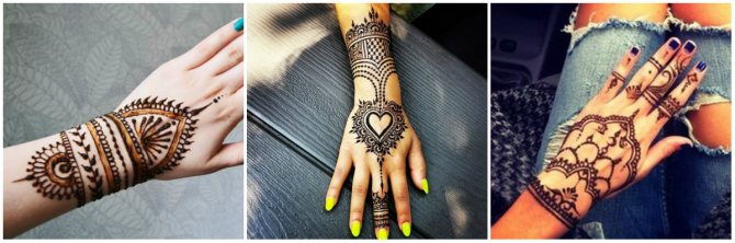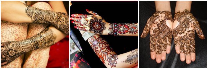 Finom vonalak, ornamentika, virágok, csepp alakú formák, áttört minták - mindezek az indiai mehendi jellegzetességei. A legszembetűnőbb és legszokatlanabb minták ebben a stílusban láthatók, ami az alábbi képen látható:
