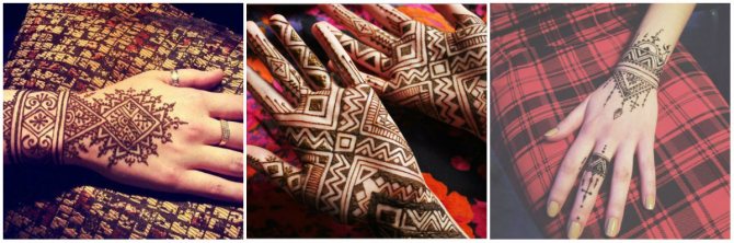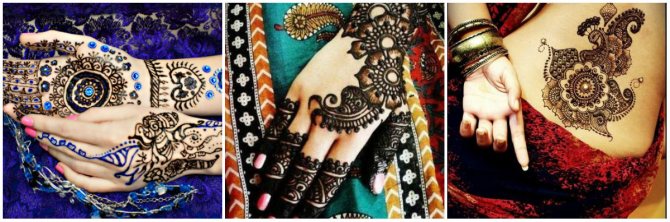 A keleti hagyomány szorosan kapcsolódik a testfestés művészetéhez. Ezeken a vidékeken keletkezett, ezeréves történelmet élt meg, és eljutott hozzánk. Ezért a dísztárgy kiválasztásakor az ilyen országok vallására kell hivatkozni, hogy megtudjuk a minta jelentését.