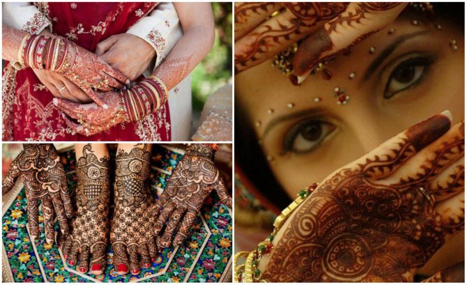 Azt gondolhatod, hogy az összes titok feltárása legfeljebb néhány órát vesz igénybe. De ez nem így van. Úgy gondolták, hogy minél több minta van egy lány testén, minél fényesebb, ügyesebb és szebb, annál tapasztaltabb és okosabb a menyasszony "házassági ügyekben". Ezért tartott több mint 5 órát vagy akár 2 éjszakát is igénybe venni, hogy ilyen terveket készítsünk. A megmaradt hennát a földbe temette (hogy elkerülje férje házasságtörését).