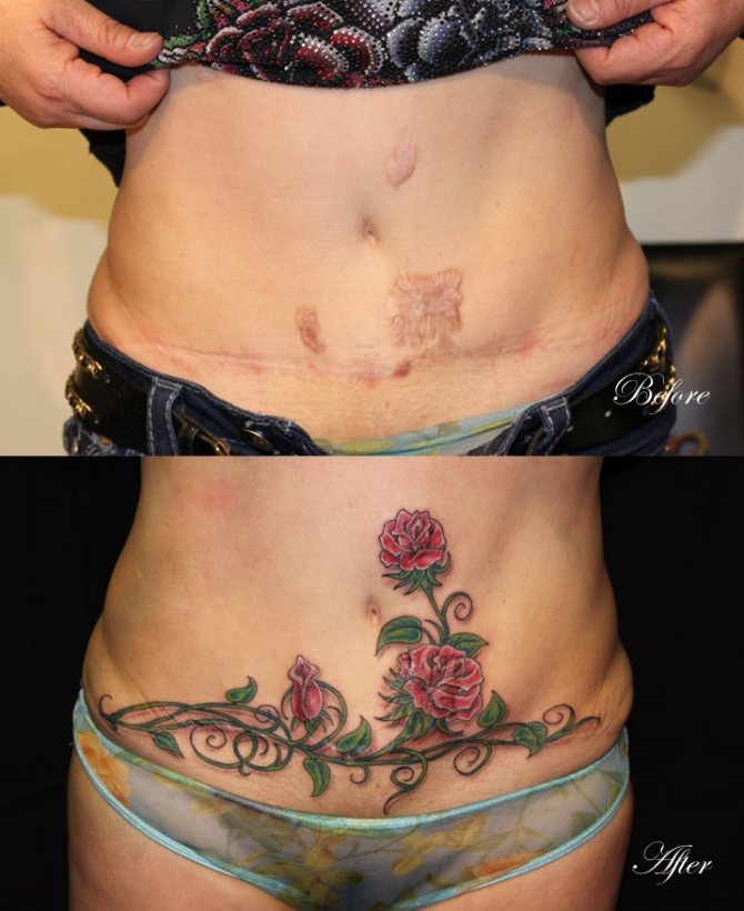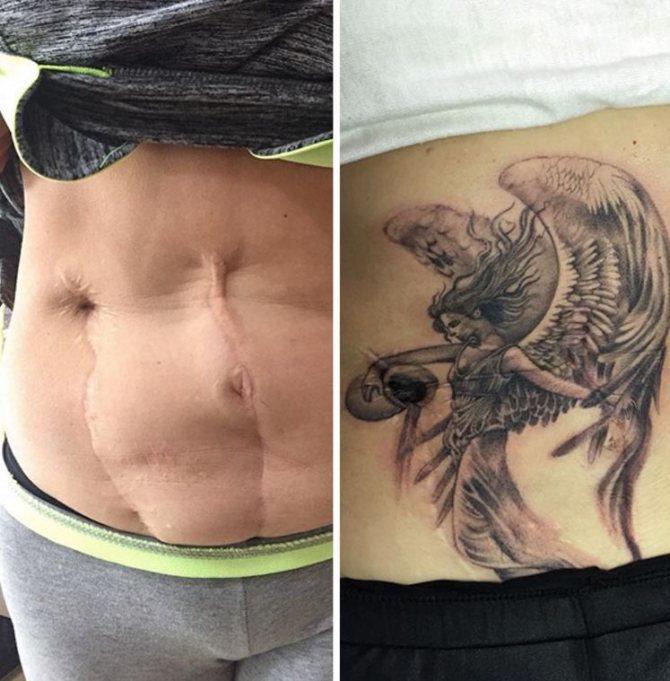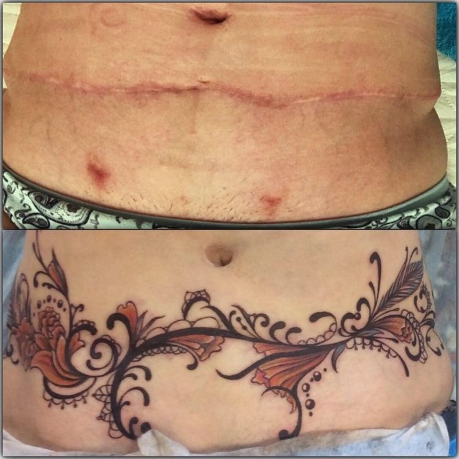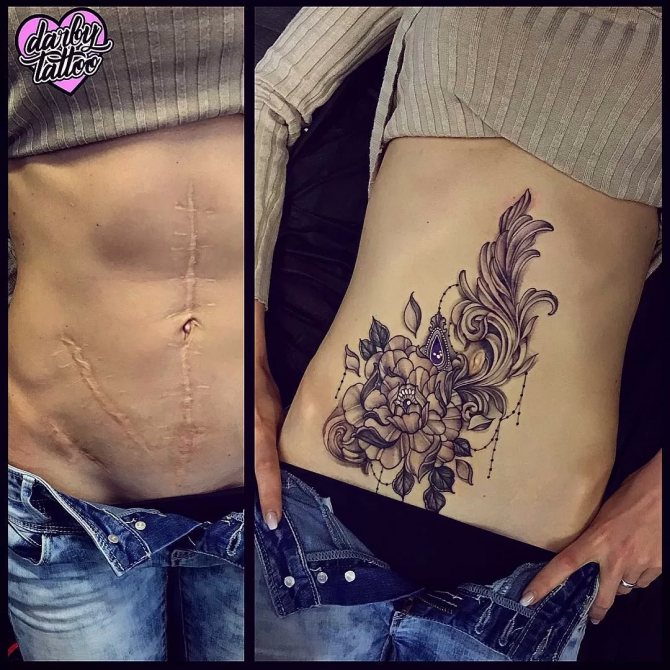 A műtét utáni hegek tetoválásainak fotója a műtét után