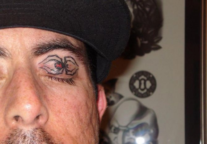 A legelterjedtebb és legelfogadhatóbb változat az, amikor a képet néhány centiméterrel a szem külső sarka alatt helyezzük fel. Itt szinte bármilyen kép előnyös lehet. És a szerencsétlen, de népszerű tetovált könny a szem alatt, amelyet alább elemezni fogunk, itt is jól mutat. Ne tetováljon azonban semmit közvetlenül a szem alá, hanem néhány centiméterrel alatta.
