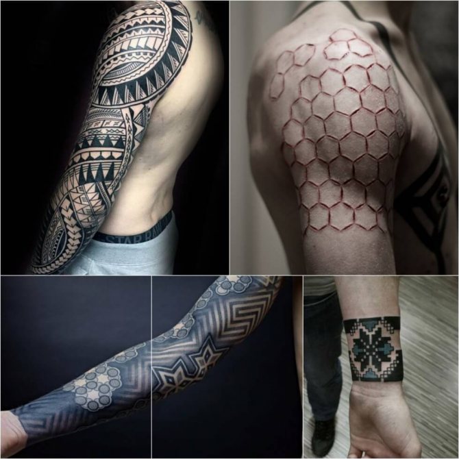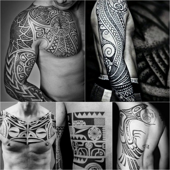 A férfiak gyakran választják a katonai témát, és itt a grafika ismét antik metszetekkel párosul: a testfestmények témái bővelkednek a katonai élet jeleneteiben, csatákban és egyszerűen az antik fegyverek részletes ábrázolásában.