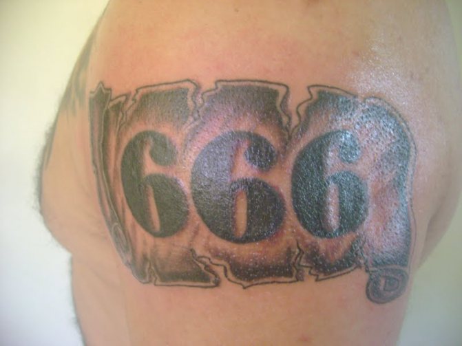 A 666-os tetoválás olyan tulajdonságokról beszél, mint a bölcsesség, a tudás, a vezetés, a hatalom és a spirituális fejlődés. Ha valaki magabiztos és céltudatos, akkor a testén lévő három hatos segít felszabadítani minden potenciálját. A 666-os tetoválás viselője természeténél fogva lázadó, és a rendszer ellen fordul, nem félve a mások általi elítéléstől. Az ember tudja, mit akar az élettől, képes eredményeket elérni és learatni a jutalmat. 666 tetoválás elismert mágikus erővel rendelkezik. Ez a belső potenciál, a szabad utak, az önmegvalósítás keresésének száma. Sikeres tettek és energiaáramlás, amely a tetoválás tulajdonosát egész életében elkíséri.