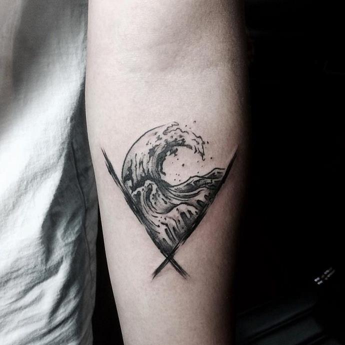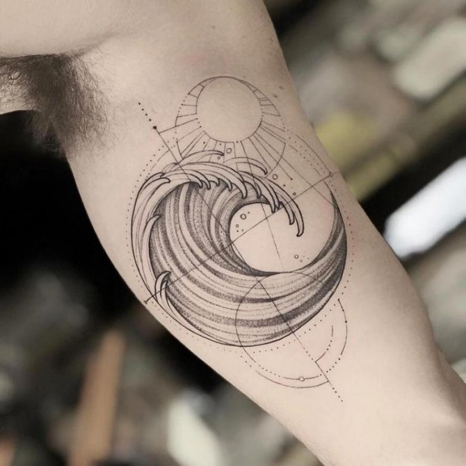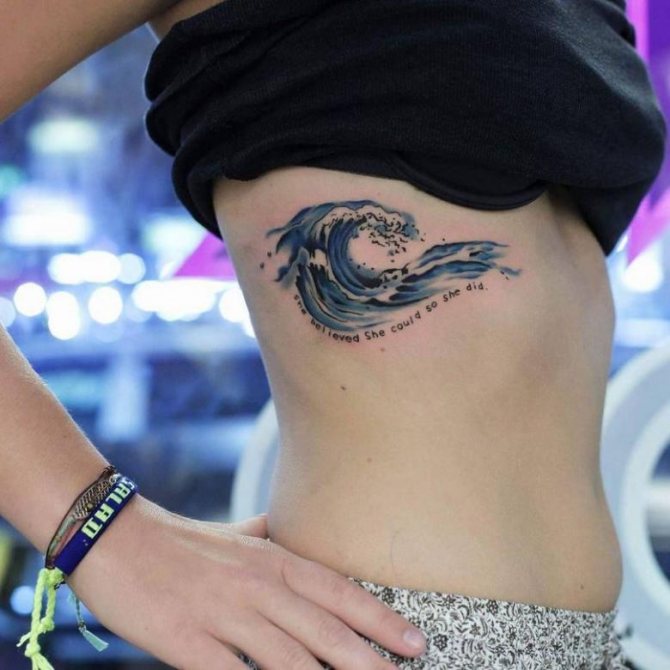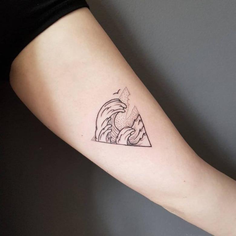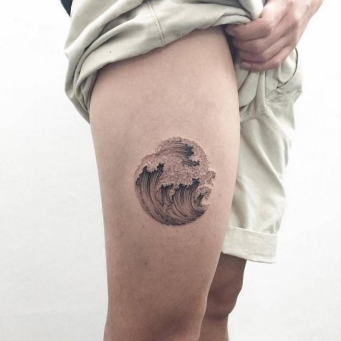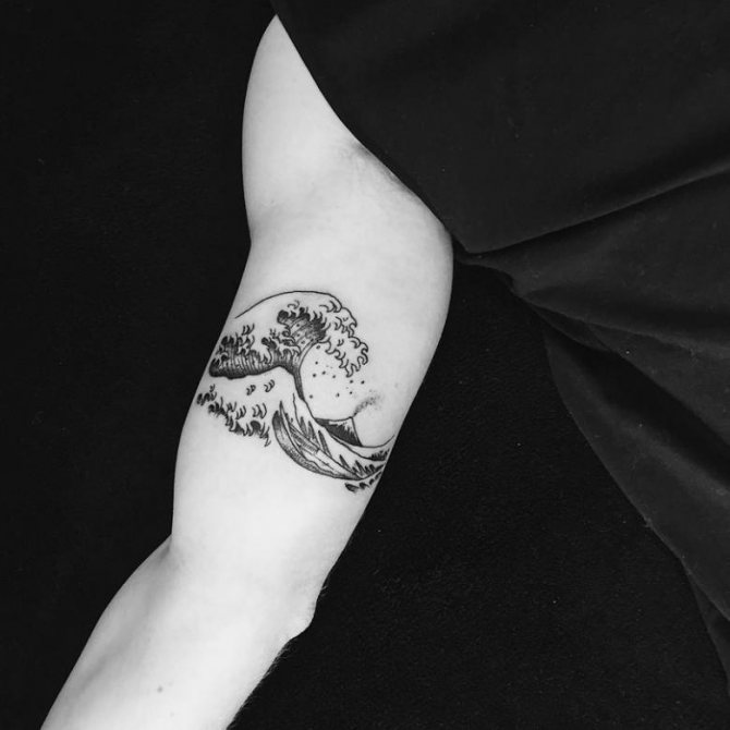 Több hullám. Ez a rajztípus hasonlíthat a tengerfelszínre, és az egyik legrealisztikusabb. Az illusztráció szelvényben is ábrázolhat hullámokat. Ezt a fajta tetoválást a tengerészek és más, az életben a tengerrel kapcsolatos emberek készítik.Hullám csobbanással. Ez mutatja a jóindulatúság hordozóját, vidámságát. Az ilyen képekkel rendelkező emberek értékelik az optimizmust.