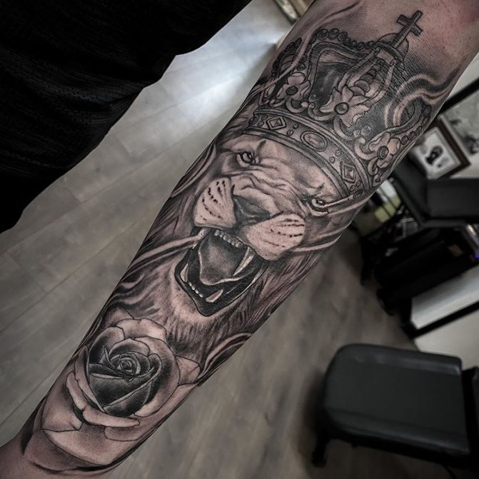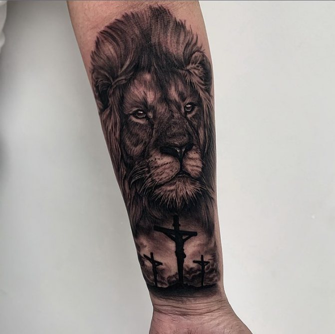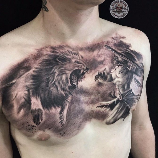 Az ősi afrikai törzsek az oroszlán képét festették a bőrükre, hogy a harcosoknak és vadászoknak bátorságot és félelmetes megjelenést kölcsönözzenek. Kínában a vadállatok királyát az egyik szent állatnak tekintették, és a vele készült tetoválásokat csak néhány kiválasztott viselte, akik kitüntették magukat a csatában vagy más katonai ügyekben. Ez az oroszlánt ábrázoló tetoválás a misztikus kultuszokhoz kapcsolódik.