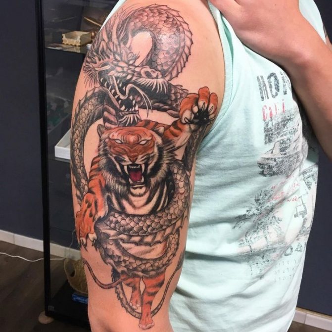 - Japánban a tigrist a gonosz szellemek elleni amulettnek tartották. Egy ilyen rajz a bőrön elűzheti a balszerencsét és megvédhet a betegségektől. A tetoválás fontos szerepet játszik a japán szervezett bűnözés kultúrájában - a jakuzában.