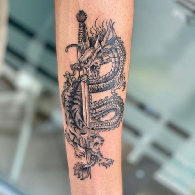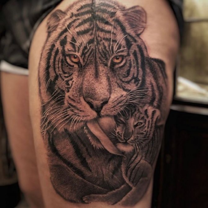 A tigrisnek megvan a maga jelentése és szimbolikája. A kép a viselő erejét, mozgékonyságát és kitartását jelzi. A tetoválás megfejtésének fontos része az állatot körülvevő részletek. Ez lehet fű, más állatok vagy madarak, feliratok vagy ékszerek. Ezenkívül a morgó állatnak néha más színe van, ami szintén befolyásolja a szimbolikáját.