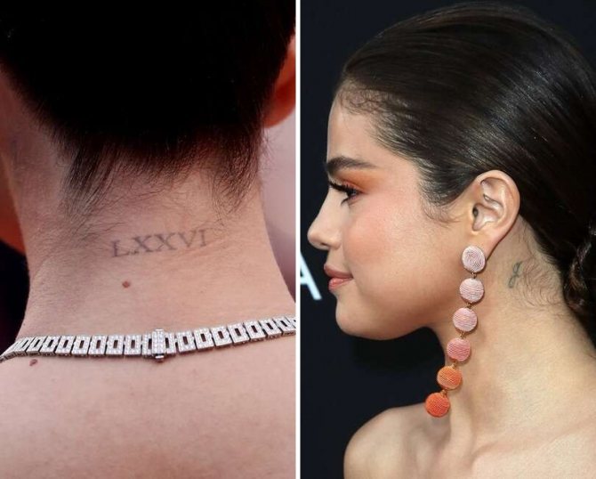 Selena a végtelenségig tudna beszélni a tetoválásainak számáról és azok jelentéséről. Ennek ellenére soha nem említette a nyakán lévő számot. Ami figyelemre méltó, hogy Gomez tetoválóművésze "fényt derített" rá. Megjegyezte, hogy ez nagyon személyes volt. És hogy a tetoválás a lány egyik családtagjának tiszteletére készült, akit különösen szeret.