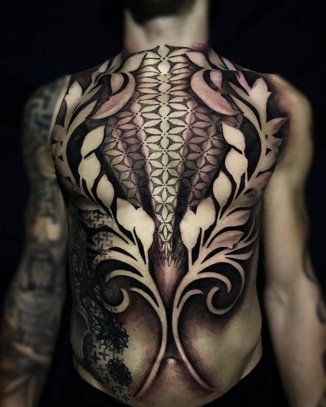 Più spesso che no, tali tatuaggi sono richiesti dal gentil sesso, ma tali modelli sono altrettanto belli sul corpo maschile. I motivi vegetali possono rappresentare un intreccio di tutti i tipi di foglie, fiori, ramoscelli e piante. Possono essere rinforzati con linee geometriche e modelli fluenti e non complicati, nonché in una varietà di tecniche diverse: dal brutale ed elegante lavoro nero a colori brillanti e rigogliosi.