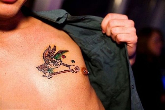 I tatuaggi divertenti sono chiaramente una priorità maschile. Spesso incidono sul loro corpo personaggi dei cartoni animati dai colori vivaci, didascalie o detti o situazioni umoristiche.