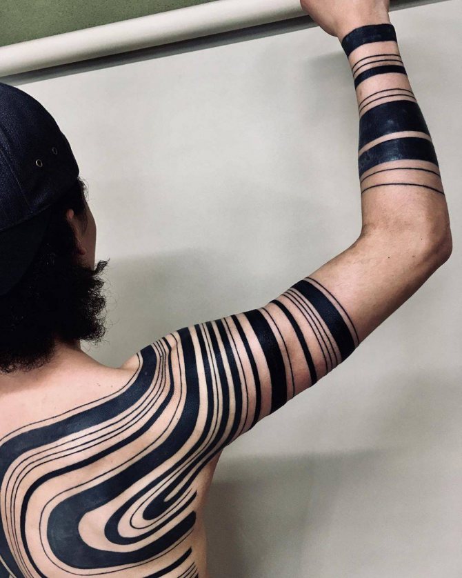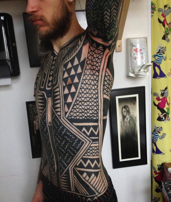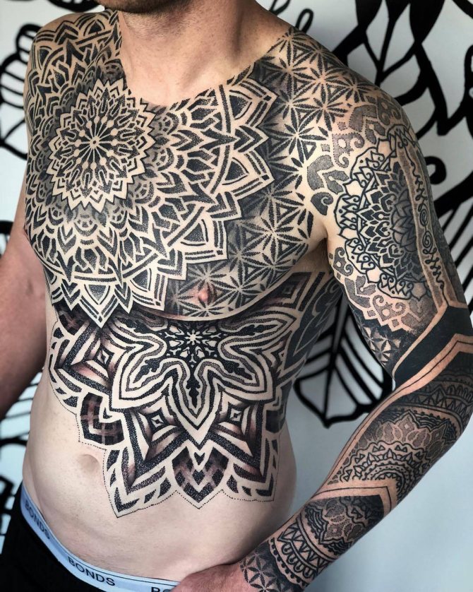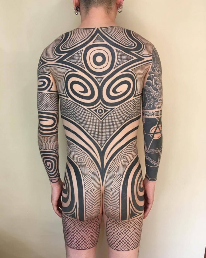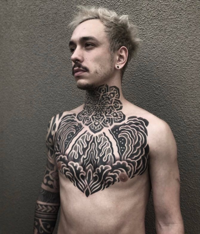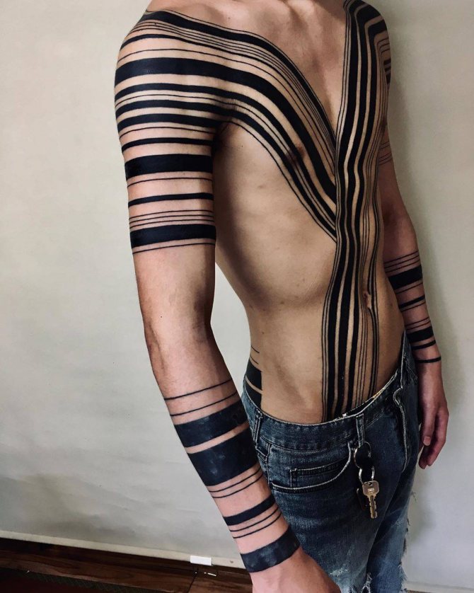 Per gli uomini, i tatuaggi con antichi motivi tribali e linee ruvide e nitide sono molto richiesti. Di solito il sesso forte sceglie tatuaggi più grandi su parti esposte del corpo come l'avambraccio, il collo e la parte inferiore della gamba. I più popolari sono i tatuaggi sulle braccia. I tatuaggi sulle maniche possono essere posizionati in modo interessante, originando sul petto e scorrendo dolcemente verso la spalla e l'avambraccio.