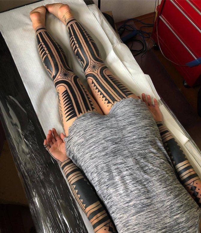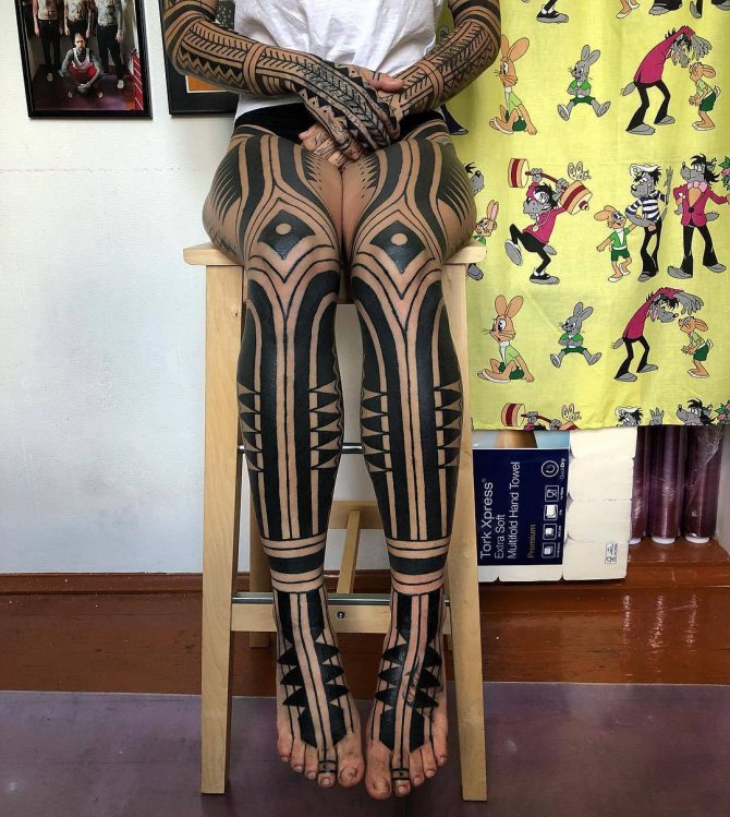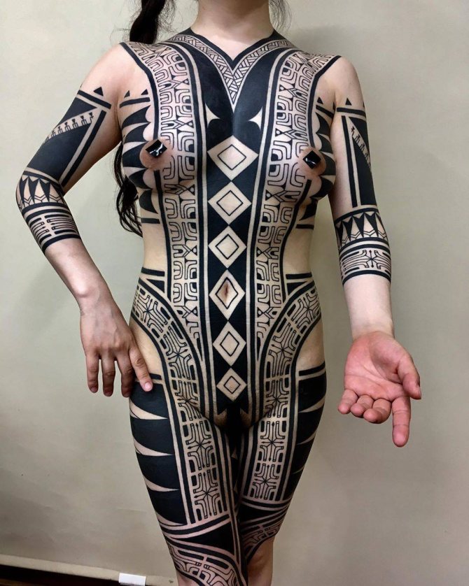 Cuori, ragni, delfini sono spesso considerati da usare. La pantera applicata, la tigre, il gatto per le donne ha un significato sessuale. Tatuaggio stile nero comune tra le giovani ragazze 20-30 anni. Preferiscono applicare motivi non complicati: braccialetti, iscrizioni, geroglifici sul pennello.