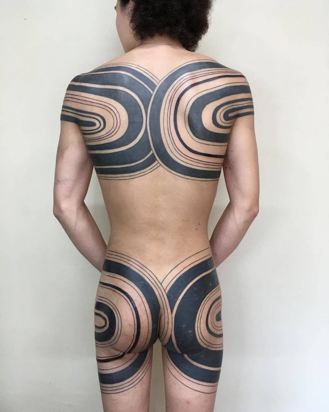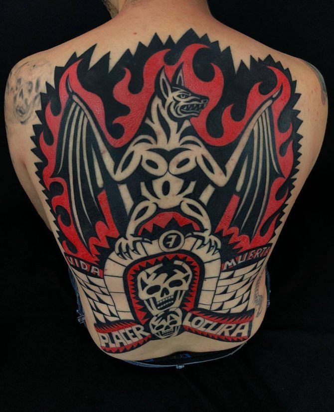 I tatuaggi sulla schiena sono uno dei più pratici e facili da applicare. I disegni in un posto del genere, con la giusta scelta di abbigliamento, possono nascondere o, al contrario, enfatizzare. La zona della spina dorsale ha una tensione della pelle abbastanza buona e una grande superficie su cui lavorare, permettendo molti tipi di tatuaggi di diverse dimensioni e contenuti. Gli schizzi sono di solito collocati nel terzo inferiore della schiena, nel centro e nel terzo superiore della schiena.