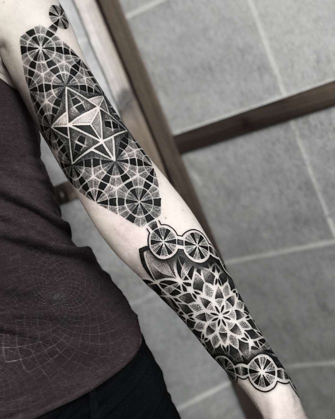 Modelli di tatuaggio - una grande scelta per le persone che non vogliono applicare sul suo corpo pesanti disegni di fantasia, preferendo loro modelli intricati, tuttavia concludere in sé un sacco di significato.