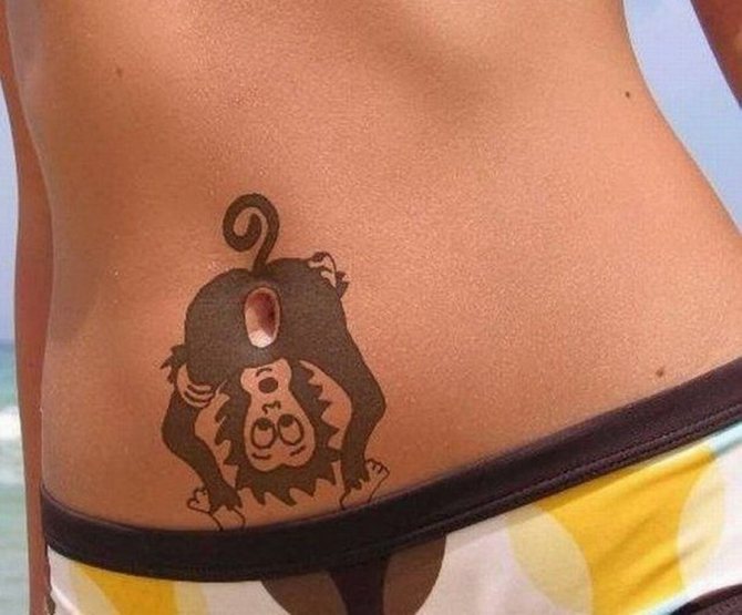 La pratica dimostra che le donne per un tatuaggio scelgono stomaco, natiche, lombi, collo, fianchi, seno. Oggi l'immagine del sole intorno all'ombelico appartiene all'immagine popolare. La scelta dei temi dipende direttamente dall'età del gentil sesso.