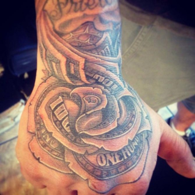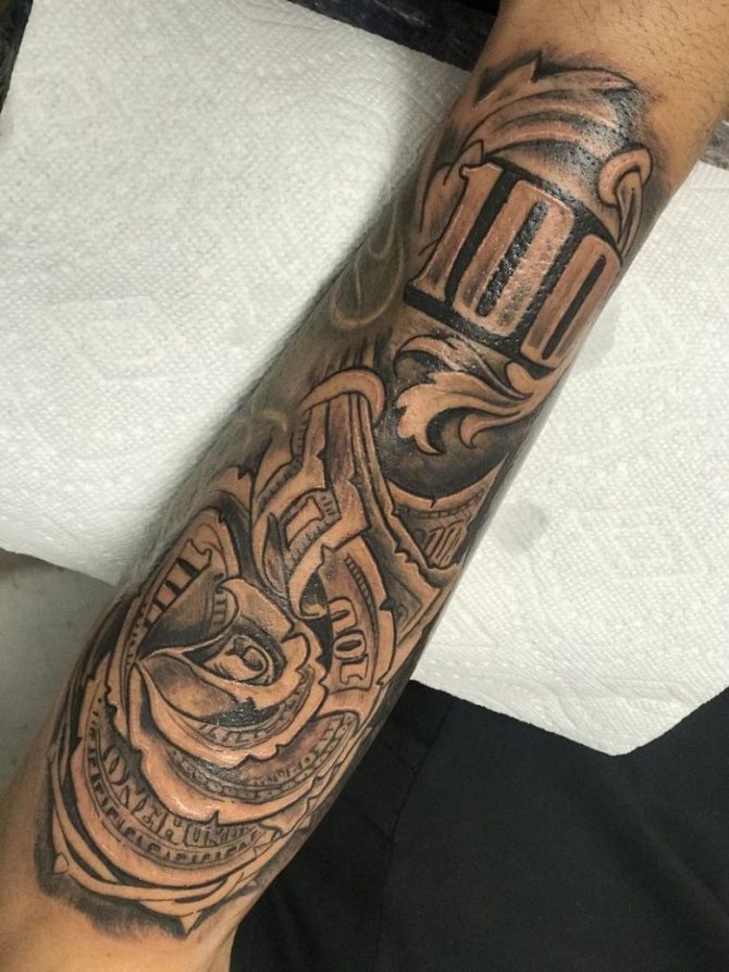 I tatuaggi di denaro sono di solito fatti da persone che vogliono attirare la ricchezza nella loro vita. Le immagini di qualsiasi banconota o moneta sono bellissime sul corpo. Questi tatuaggi sono di solito combinati con altri simboli o scritte.
