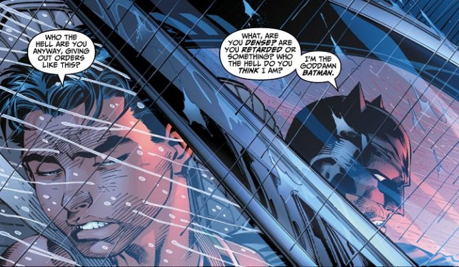 E dove "All Star" non corrompe con la follia, corrompe con la sua ostentata "coolness". Questo è principalmente grazie a Jim Lee, che ha disegnato questa serie ancora più duramente di "Hush". Batmobili volanti, donne mozzafiato, sei pagine con una bat-caverna, e un sacco di altre cose che è meglio vedere una volta che sentire cento volte. Chiedetevi solo - dove altro avete visto un macho muscolosoAlfreddicendo apertamente al "Maestro Wayne" di andare a farsi fottere? Proprio così.