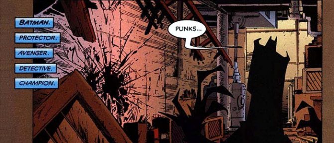 Una caratteristica distintiva di Year One che lo distingue da tutti i fumetti di Batman e che piacerà anche a chi non ama i supereroi - difficilmente può essere definito un tatuaggio di supereroi. È fondamentalmente privo di mostri in costume, a meno che non si conti Batman stesso e un breve cameo Catwoman. Nel suo nucleo, Year One è una storia di crimine semplice e con i piedi per terra, il cui posto è in un romanzo palpabile, o in un film noir degli anni quaranta. C'è il gruppo del crimine organizzato locale, c'è la polizia corrotta, c'è il nuovo arrivato Bruce Wayne, ancora indeciso sui suoi piani futuri, e c'è Jim Gordonbloccato nel mezzo di questo incubo. È quest'ultimo, non Batman stesso, che emerge come il protagonista della storia, attraverso il quale il lettore viene introdotto nelle strade poco amichevoli di Gotham.