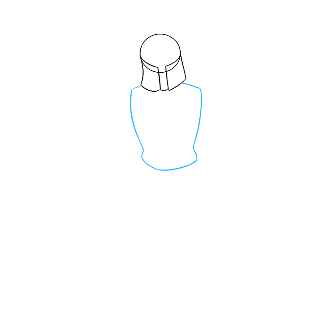 2. Applicare l'armatura della corazza sotto l'elmo. Usa una serie di linee curve che si incontrano in angoli arrotondati. Notate come l'armatura si curva verso l'interno appena sopra la vita.