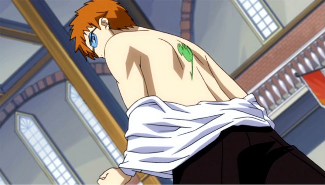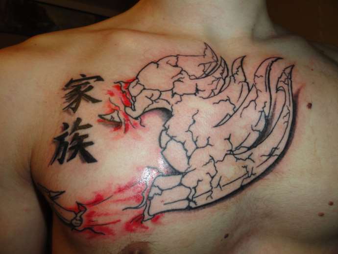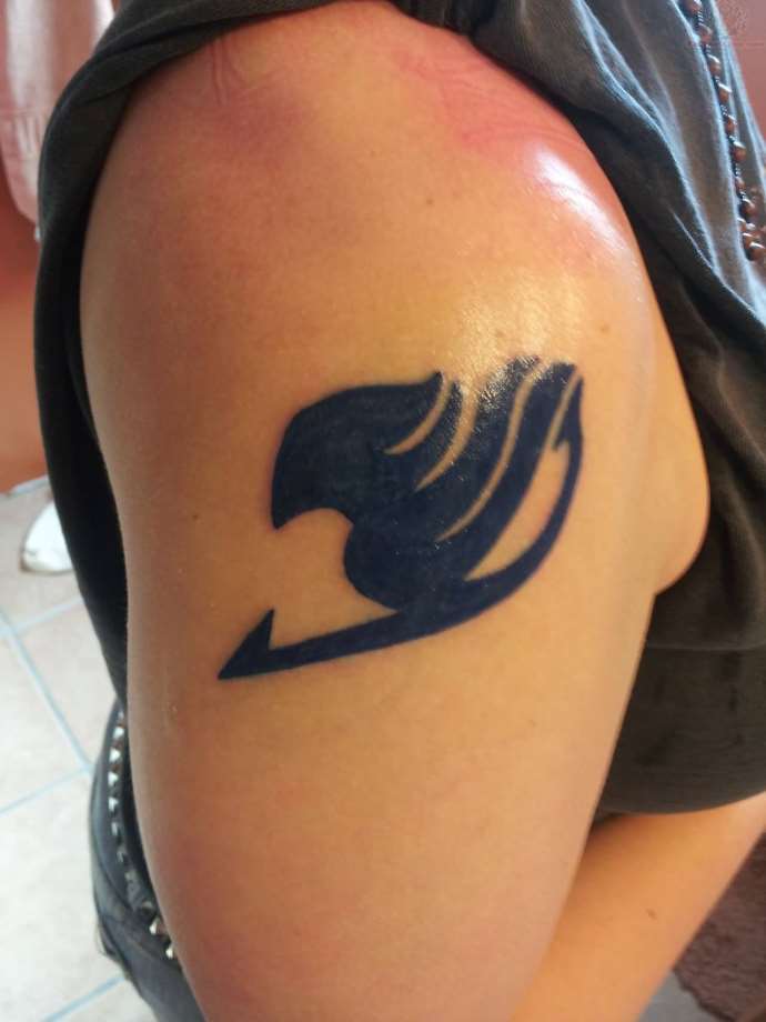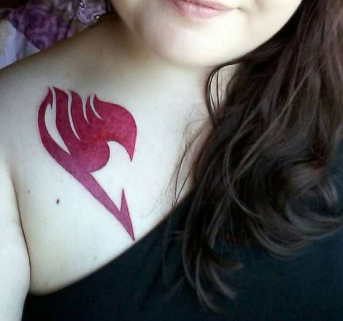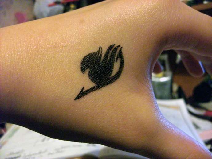 Tattoo Tail of the Fairy - Tatuaggio della gilda dei maghi nella serie anime Fairy Tail. Nel mondo immaginario, le persone con poteri magici si uniscono in gilde per migliorare le loro abilità e completare i compiti. La gilda Fairy Tail dà la caccia ai criminali, smaschera le gilde clandestine e combatte i demoni.