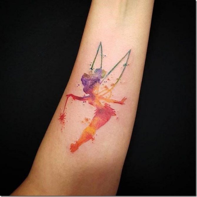Il disegno del tatuaggio dipende dagli interessi del cliente e dall'abilità dello specialista. Ci sono molte idee di fata, ecco le più comuni: