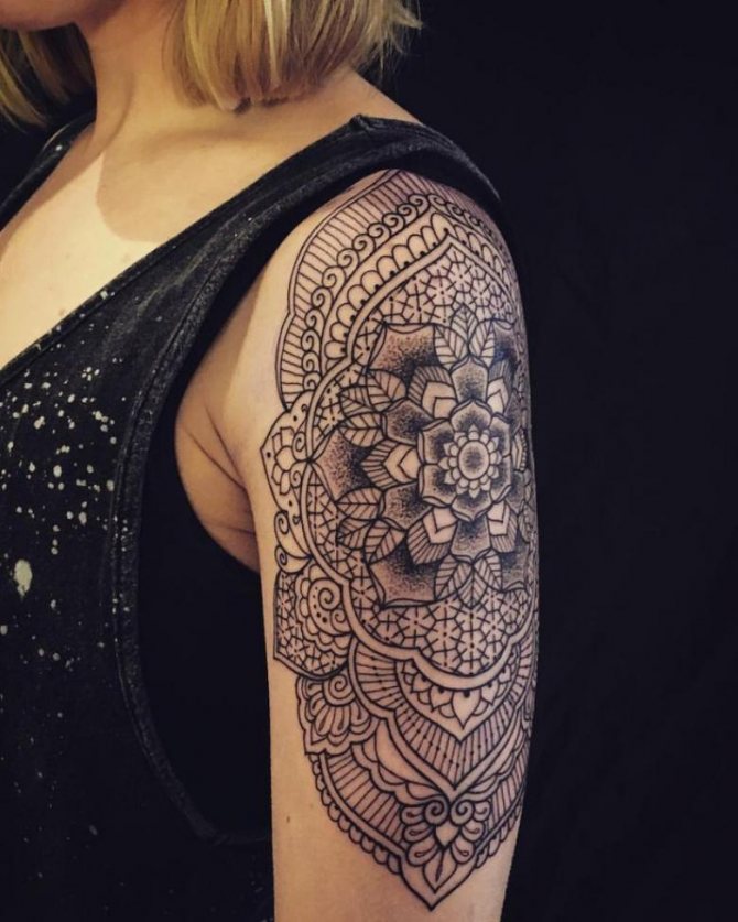 Non sempre si ottiene un bel tatuaggio mandala. La sua imbottitura è molto dolorosa e bisogna sopportare il dolore per ore, poiché il tatuaggio consiste di molti dettagli intricati. Questo è importante se si vuole ottenere un buon risultato.