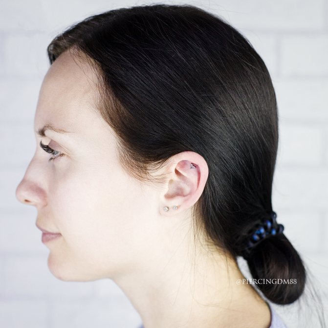 . Questo viene fatto nella cavità superiore del padiglione auricolare. A differenza della normale chelix, la cartilagine è forata in due punti;