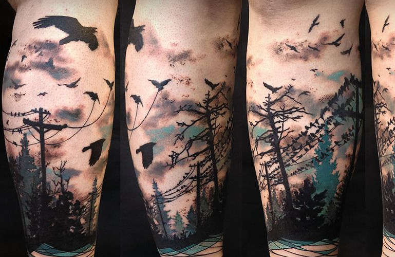 Stili e colori che sono popolari per i tatuaggi "foresta" sul braccio