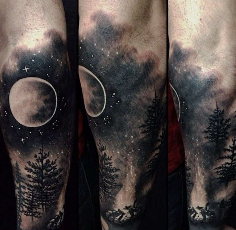 Un'atmosfera misteriosa avvolge chi lo indossa con un boschetto di tatuaggi al chiaro di luna, soprattutto se fatto in uno stile realistico. L'oscurità impercettibile della foresta e la luna che inonda tutto con la sua luce - come simbolo di luce la fede nel futuro, la speranza di salvezza, l'arrivo di eventi felici. Inoltre, il ciclo della luna raffigurato (nascita, vita, estinzione) è importante: la luna piena è la più comune in combinazione con la foresta. Un cerchio di forma perfetta: da un lato, rappresenta l'integrità, la forza spirituale; dall'altro, la caducità della vita, la sua impermanenza.