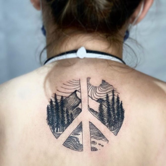 A predeterminare il significato di un tatuaggio della foresta può essere l'umore del disegno. Se è una foresta cupa e scura, indica la reticenza e la pensosità del proprietario, se una foresta luminosa e soleggiata - su una mente positiva, temperamento incontenibile, allegria.