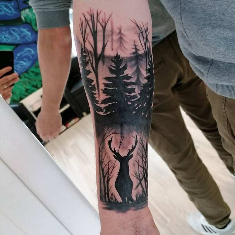 Simboli che possono essere combinati con un tatuaggio "foresta" sul braccio di un uomo