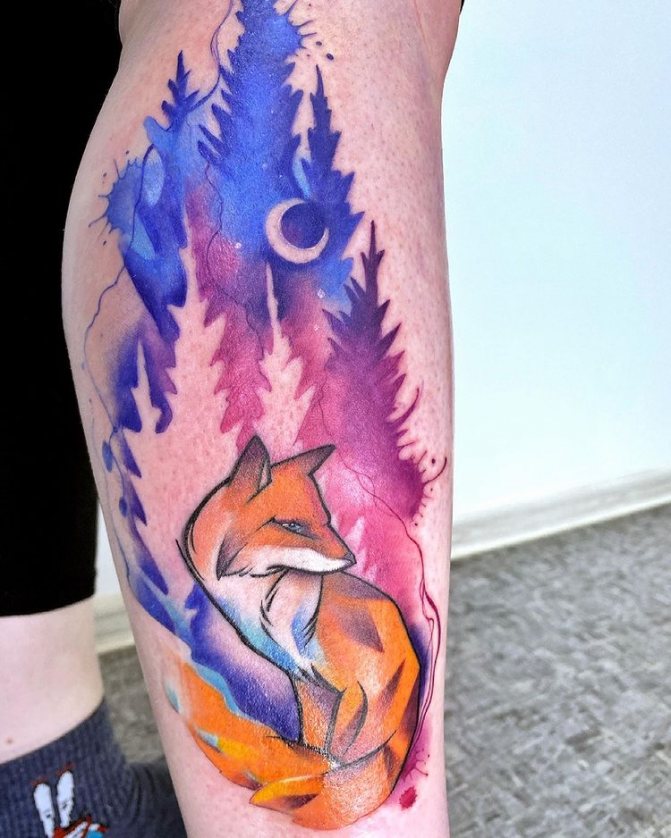 acquerello - modo positivo di fare un tatuaggio della foresta con diversi colori e senza linee chiare