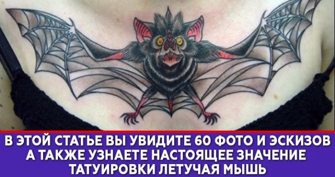 Le interpretazioni di questo tipo di tatuaggio vanno così: "Da bambini giocavamo alle spie e il pipistrello era il nostro simbolo. Siamo tutti cresciuti, ma vogliamo portare con noi la nostra infanzia spensierata, e lasciare che si esprima visivamente". Beh, questo è un approccio interessante, può essere applicato sia ai tatuaggi femminili che a quelli maschili. Ma allora l'immagine sarà probabilmente piccola e concisa.