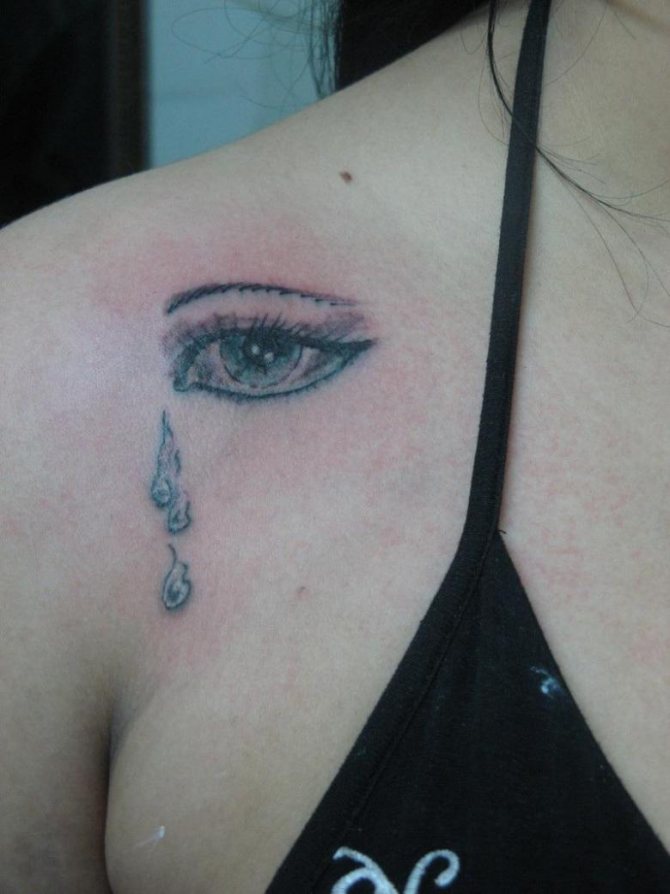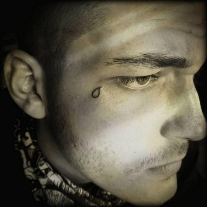 Ma non tutti i significati di questo tatuaggio si riferiscono a una vita di crimine. Se un ragazzo o un uomo si fa un tatuaggio di una lacrima, indica che una grande perdita di una persona cara è avvenuta nella sua vita. Con questa immagine, esprime il suo dolore per tutta la vita per quella persona.